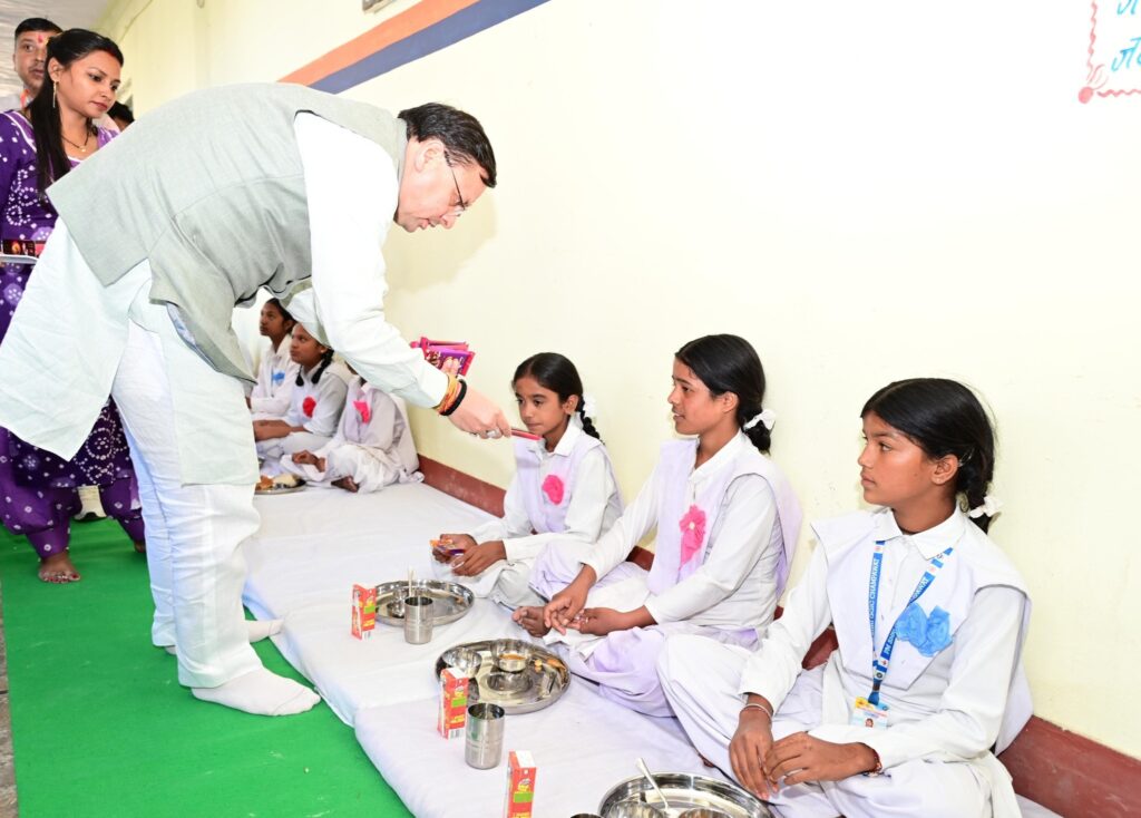 इस अवसर पर मुख्यमंत्री ने विद्यालय में अध्ययनरत बालिकाओं के साथ बैठकर भोजन भी किया। मुख्यमंत्री ने उनसे विभिन्न विषयों पर चर्चा की एवं पढ़ाई के संबंध में फीडबैक भी लिया।