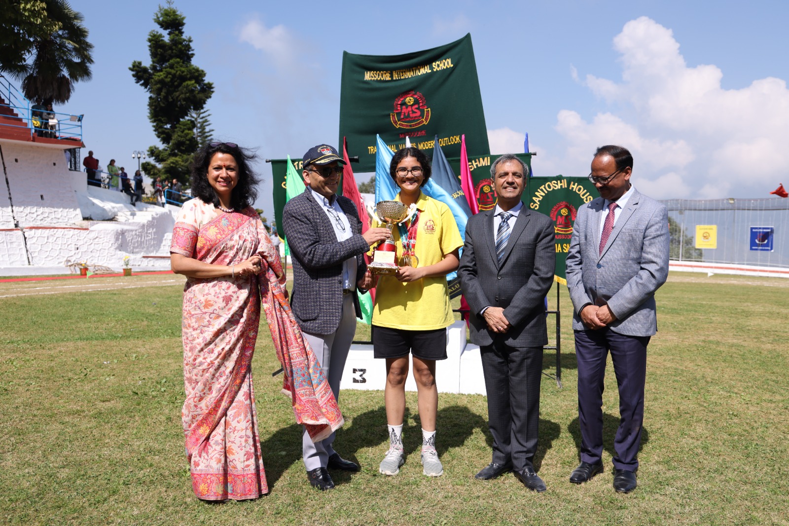 मसूरी। मसूरी इंटरनेशनल स्कूल का 42वां वार्षिक खेल दिवस पूरे उत्साह के साथ मनाया गया जिसमें छात्राओं ने अपनी खेल प्रतिभा का प्रदर्शन किया। प्रतियोगिता में ओवर ऑल ट्राफी संयुक्त रूप से लक्ष्मी व संतोषी सदन ने कब्जाई। खेल प्रतियोगिताओं का शुभारंभ मुख्य अतिथि डीजीपी उत्तराख्ांड अभिनव सिंह व प्रधानाचार्या शालू बब्बर ने वैदिक मंत्रों व विद्यालय की प्रार्थना के साथ किया। वहीं मशाल प्रज्वलित व ध्वजारोहण किया गया। विद्यालय की स्पोर्टस कप्तान दिव्या यादव व उप कप्तान कंचन जायसवाल ने सभी खिलाडियों को शपथ दिलायी। इसके बाद भव्य मार्चपास्ट किया गया। इसके बाद प्रतियोगिताए शुरू हुई जिसमें 100, 200, 400, मीटर दौड़ सबजूनियर, जूनियर व सीनियर वर्ग में आयोजित किया गया। वहीं योगा, जूम्बा, बाधा दौड़ व ड्रिल लेजियम की प्रस्तुति की गयी। इस मौके पर मुख्य अतिथि अभिनव सिंह ने कहा कि देश का भविष्य बालिकाओं को है, मसूरी इंटरनेशन स्कूल की छात्राओं ने भारतीय संस्कृति का सुंदर संगम दिखाई देता है। उन्होंने प्रधानाचार्या शालू बब्बर व उनकी टीम की सराहना करते हुए कहा कि इन छात्राओं का प्रदर्शन देश के उज्जवल भविष्य को दर्शाता है। प्रतियोगिता में ओवर ऑल ट्राफी लक्ष्मी व संतोषी सदन ने कब्जाई। अंत में विजेताओं को पुरस्कार वितरित किए गये।